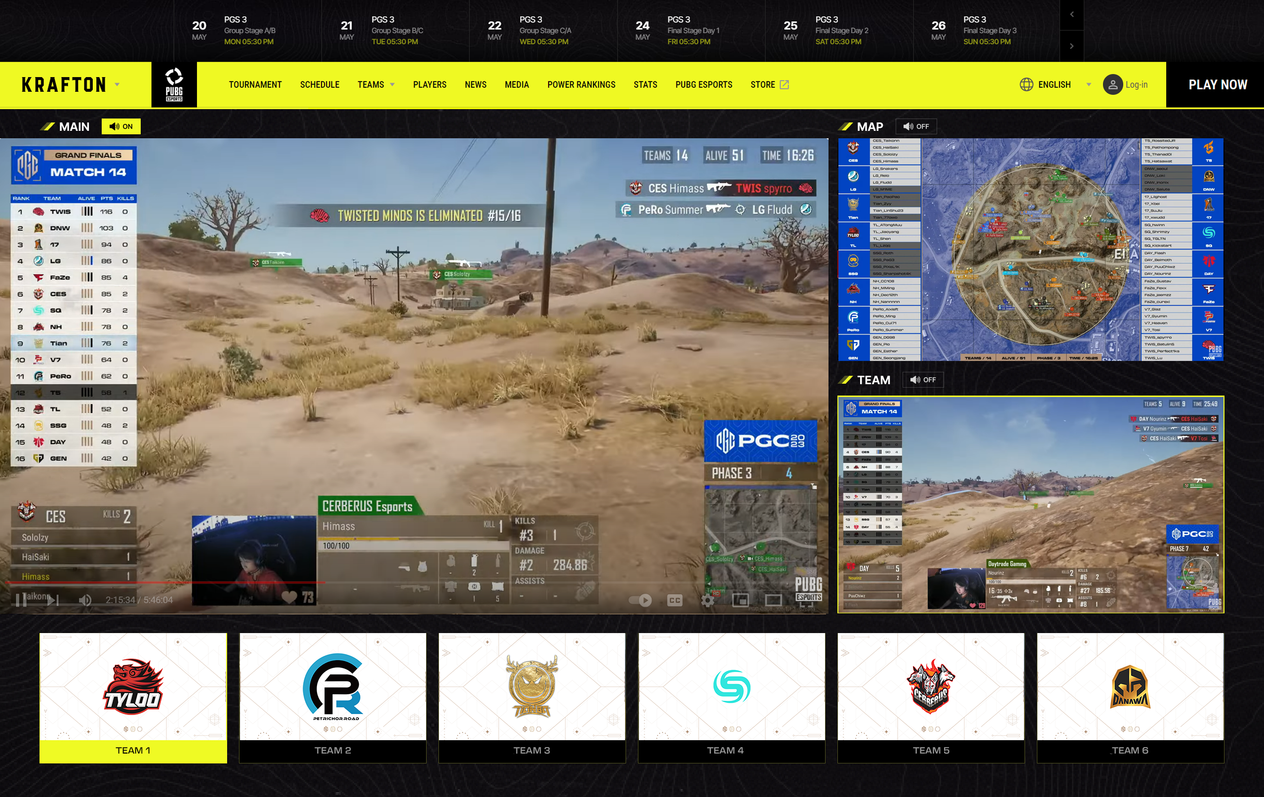 Youtube Map feed: https://www.youtube.com/c/PUBGEsports
