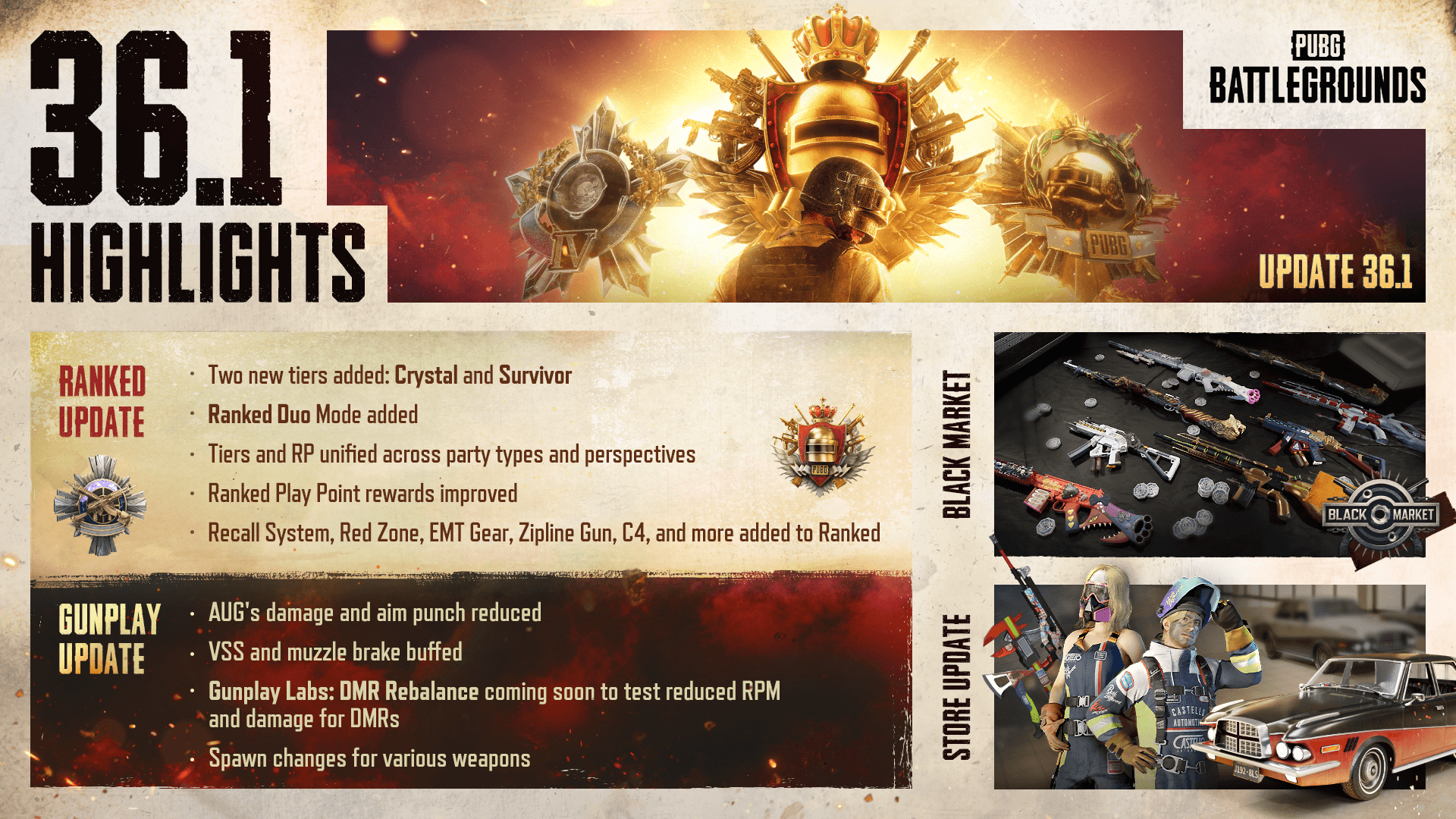 Saison 36 bringt einige große Änderungen am Ranglisten-Modus von PUBG mit sich. Mehr über die Hintergründe dieser Überarbeitungen erfahrt ihr im kürzlich veröffentlichten Entwicklerbrief: Ranglisten-Überarbeitung - Saison 36!