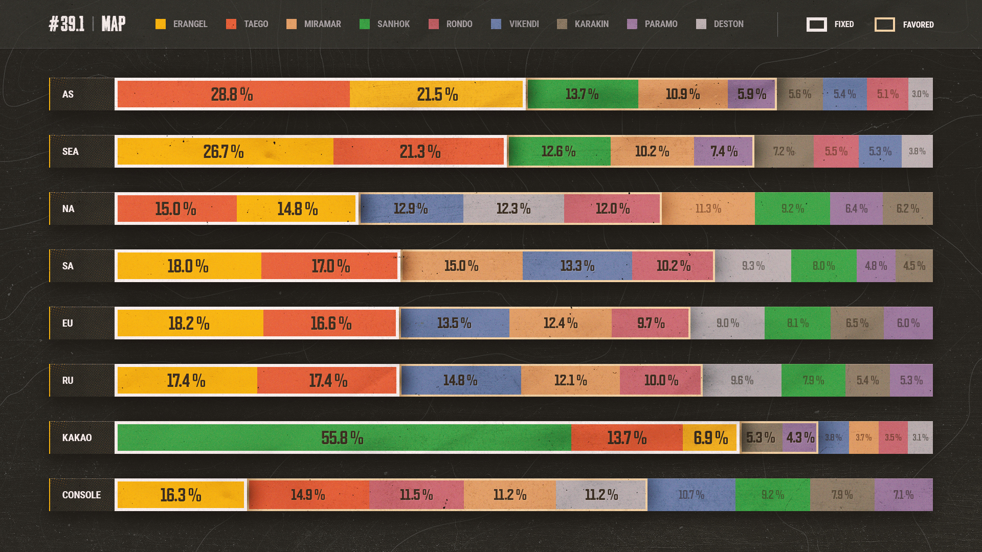 Unterhalb findet ihr die Daten zur regionalen Kartenpräferenz und -rotation für Update 39.1.