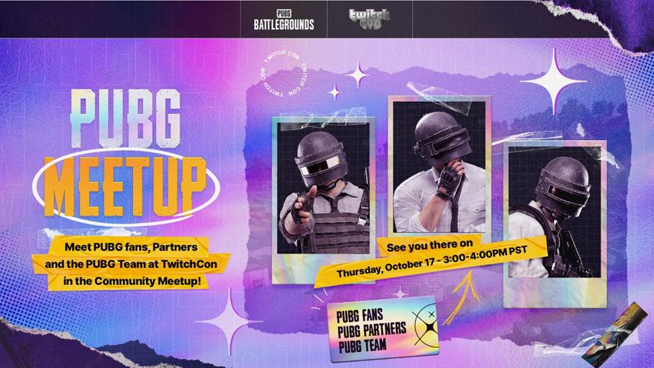 On Friday, October 17, from 3:00–4:00 PM PT, join us at the TwitchCon Meetup Area 1 for a special PUBG Community Meetup. It’s your chance to hang out with staff, creators, and fellow players face-to-face. Whether you’re a long-time player or new to the Battlegrounds, everyone is welcome.