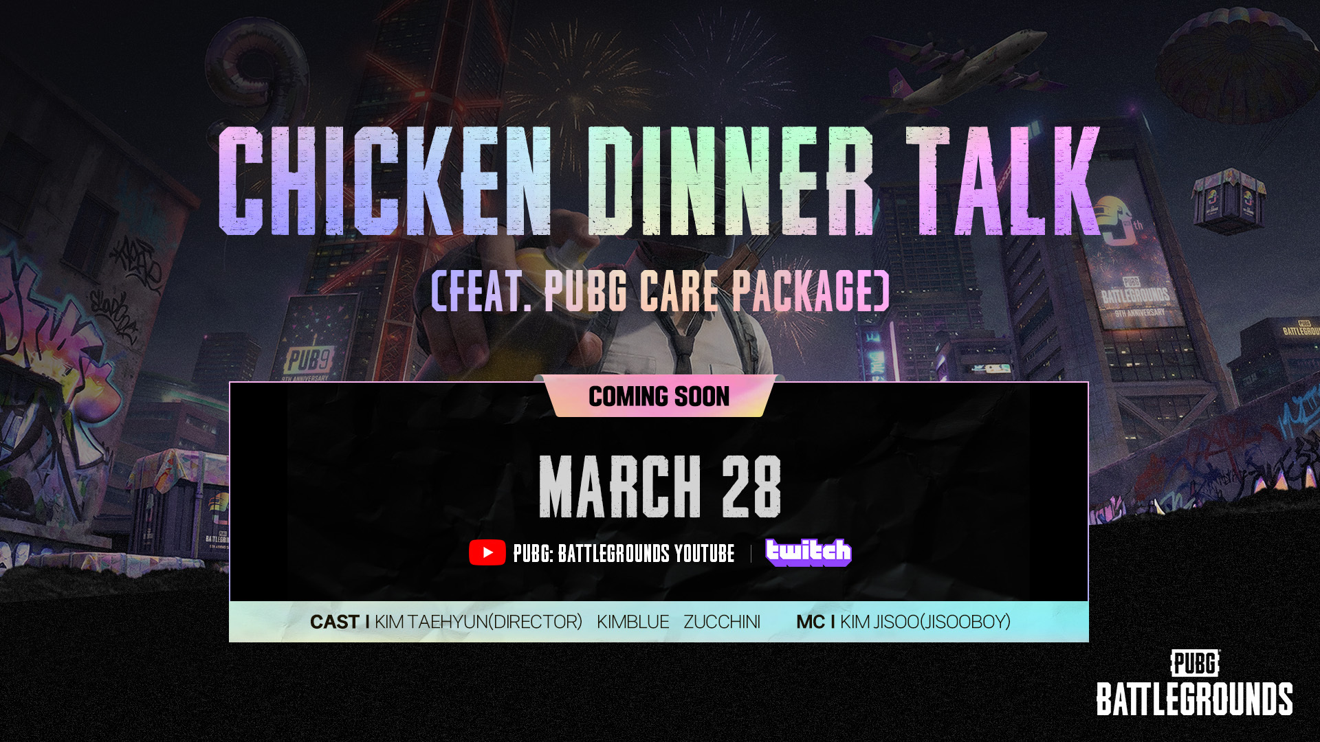 Join us on March 28 at 06:30(UTC), where the PUBG Director Tae-hyun Kim and Korean partners will come together to look back on the past 9 years and share stories with players around the world.