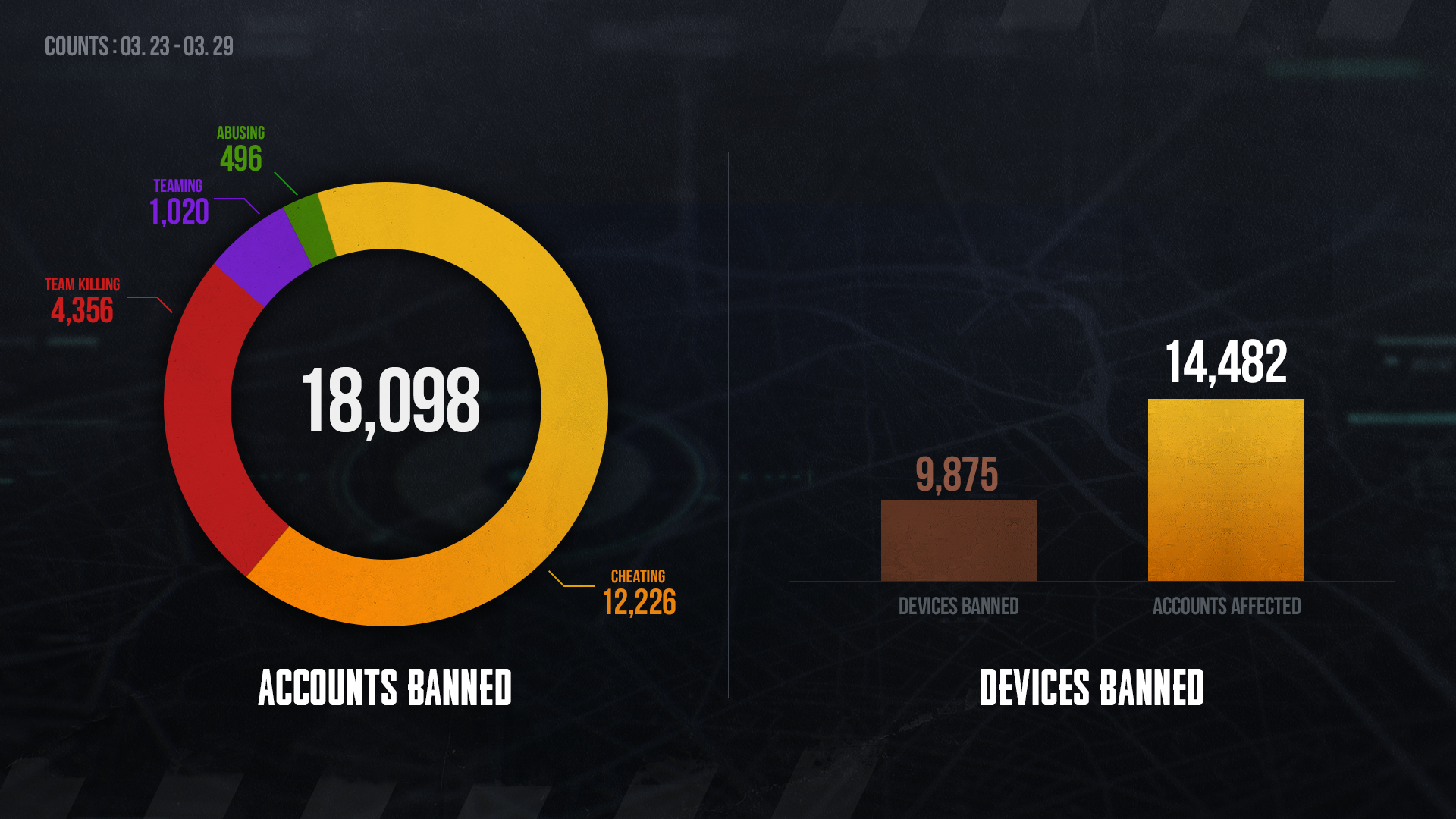 Compartimos la lista de jugadores baneados de la semana pasada para concienciar sobre el abuso de software ilegal y las consecuencias de la mala conducta. Consulta la lista de jugadores que han sido expulsados por infringir las normas de conducta.