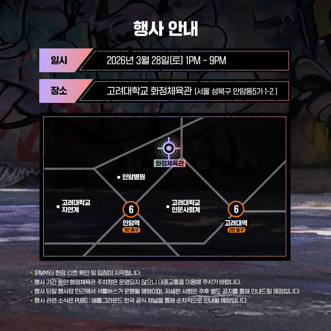 오직 PUBG 플레이어만을 위한 사전 예매가 준비되어 있으니 꼭 미리 예매하고 현장에서 최고의 순간을 경험해 보세요!