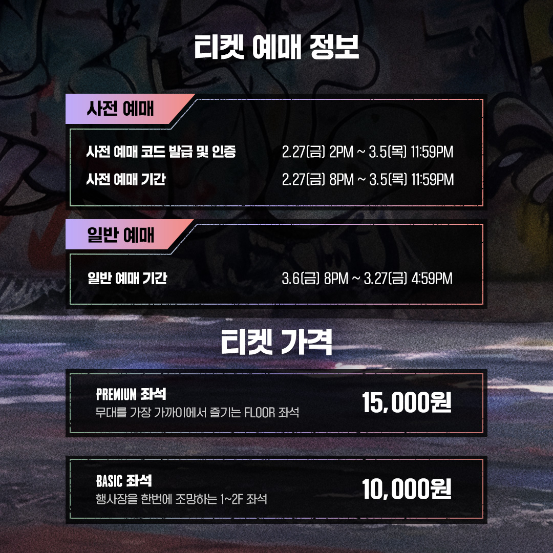 2026/02/27(금) 20:00부터 멜론티켓 홈페이지에서 선착순으로 사전 예매가 시작됩니다.