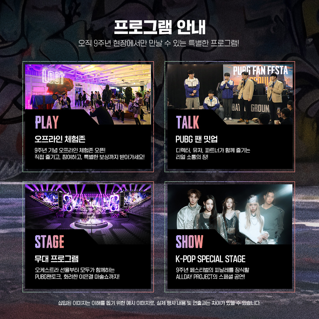 PUBG 팬 밋업, 이은결 마술쇼를 포함한 환상적인 무대, ALLDAY PROJECT의 스페셜 공연 등 PUBG 9주년을 위한 특별한 페스티벌!
