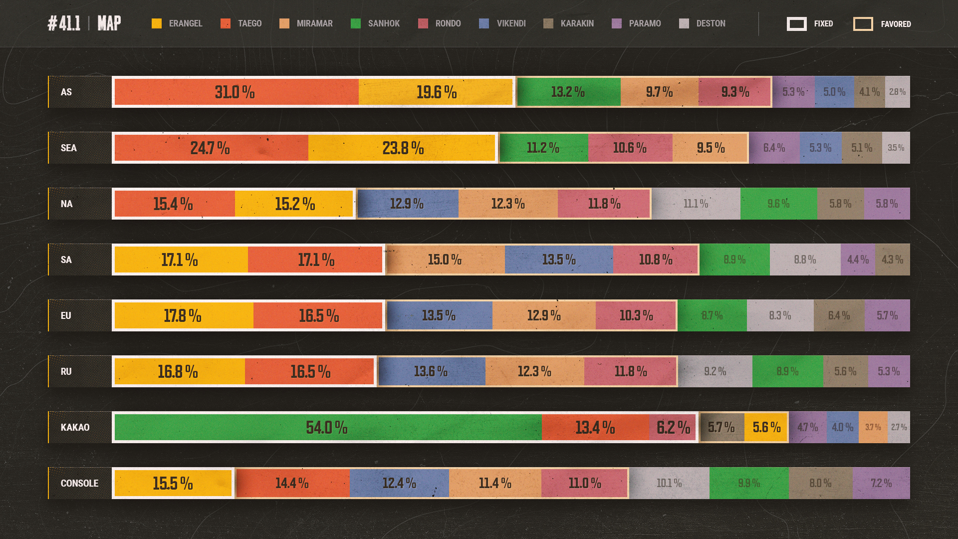 업데이트 41.1의 리전별 맵 선호도와 맵 로테이션을 공유드립니다.