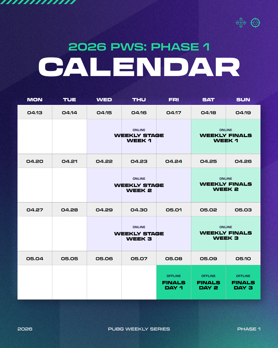 - 모든 PWS 경기를 통해 획득한 KR PGC Points 상위 3 개 팀에게는 PUBG Global Championship 2026 대회 진출 자격 부여
