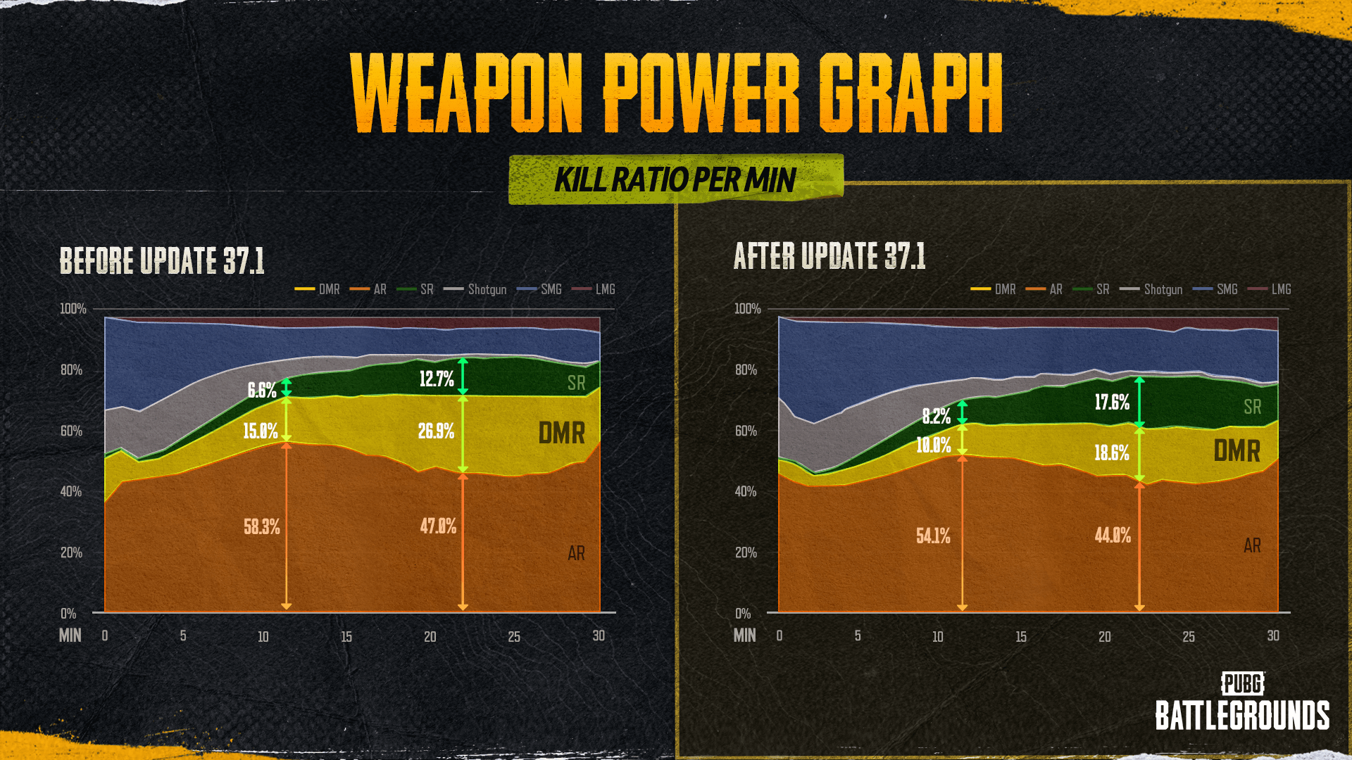Desde a implementação do Reajuste de DMR com a Atualização 37.1, o ecossistema de armas do PUBG passou por várias mudanças. Como esta atualização trouxe ajustes significativos aos DMRs, muitos de vocês podem estar curiosos para saber como o combate do PUBG evoluiu desde então.