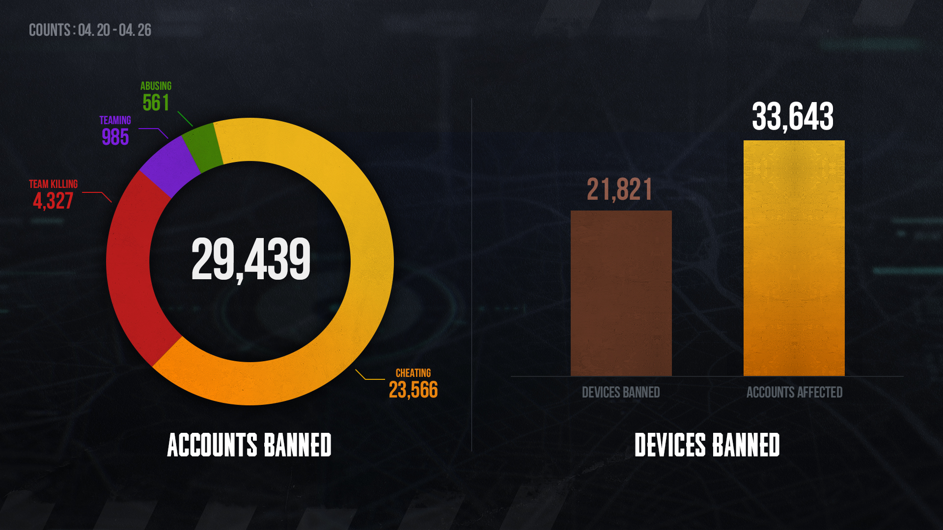 Ниже мы опубликовали список заблокированных игроков на период с 20.04 до 26.04, чтобы повысить осведомленность о злоупотреблении нелегальным программным обеспечением и о последствиях неправомерных действий в игре. Пожалуйста, ознакомьтесь со списком игроков, которые были заблокированы за нарушение правил поведения.