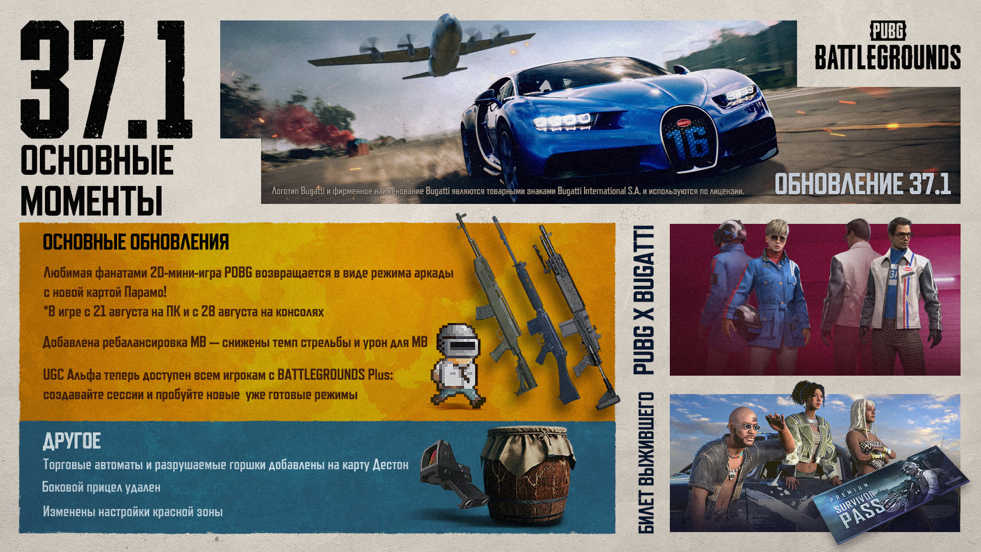 Следите за целым рядом потрясающих обновлений, связанных с нашей коллаборацией с Bugatti! Не пропустите анонс коллаборации PUBG x Bugatti, чтобы узнать, как получить эксклюзивные скины Bugatti, посетить страницу модификации Bugatti в Мастерской и не только!