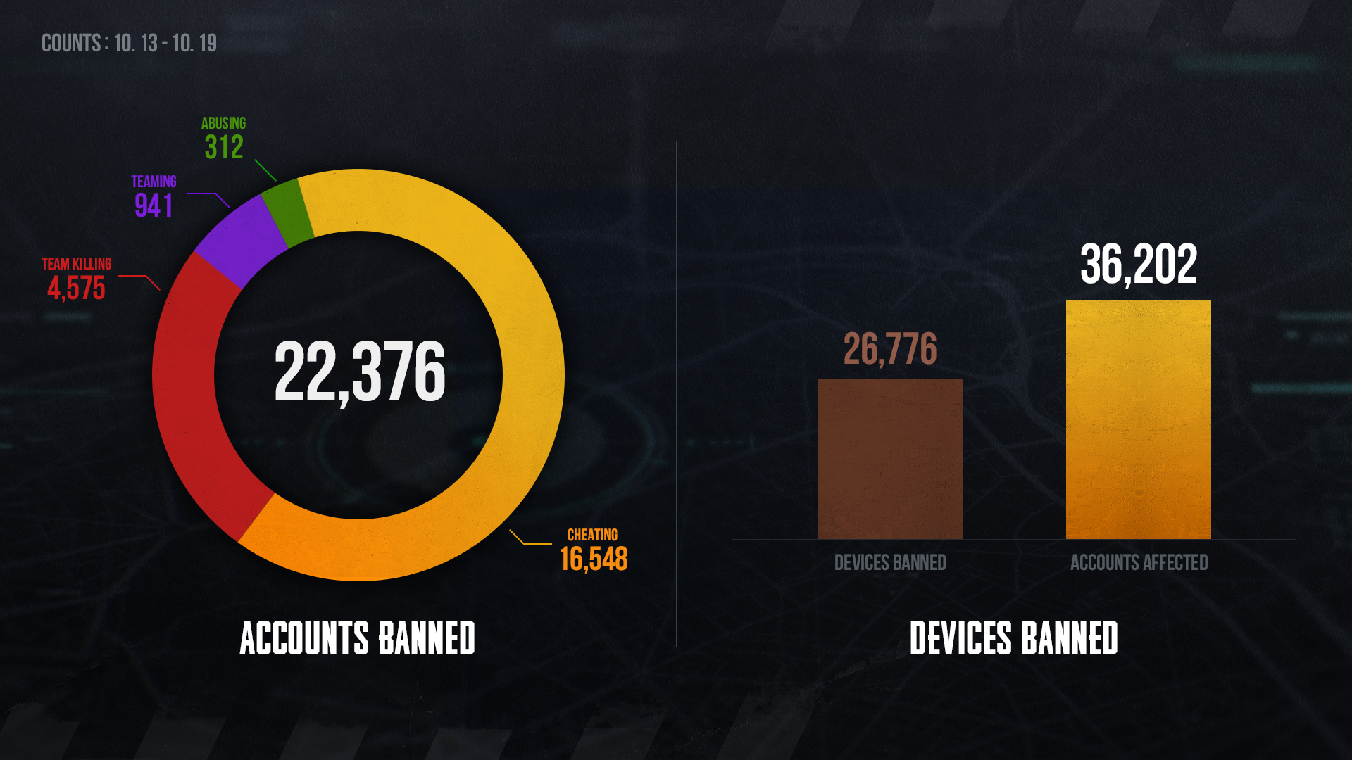 Ниже мы опубликовали список заблокированных игроков на период с 13.10 до 19.10, чтобы повысить осведомленность о злоупотреблении нелегальным программным обеспечением и о последствиях неправомерных действий в игре. Пожалуйста, ознакомьтесь со списком игроков, которые были заблокированы за нарушение правил поведения.
