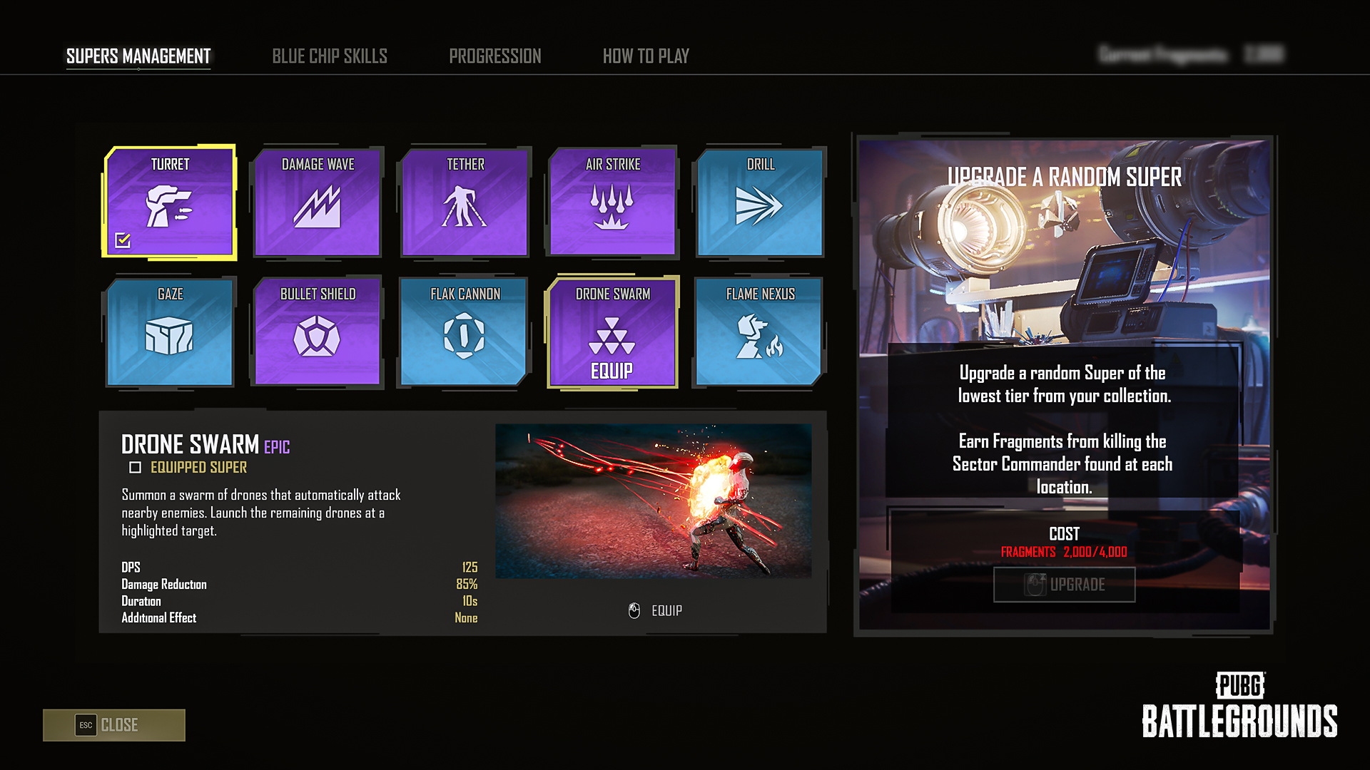 - ผู้เล่นสามารถสร้างและอัปเกรดซูเปอร์โดยใช้แฟรกเมนต์ที่ได้มาที่สถานีสร้างในฮับ