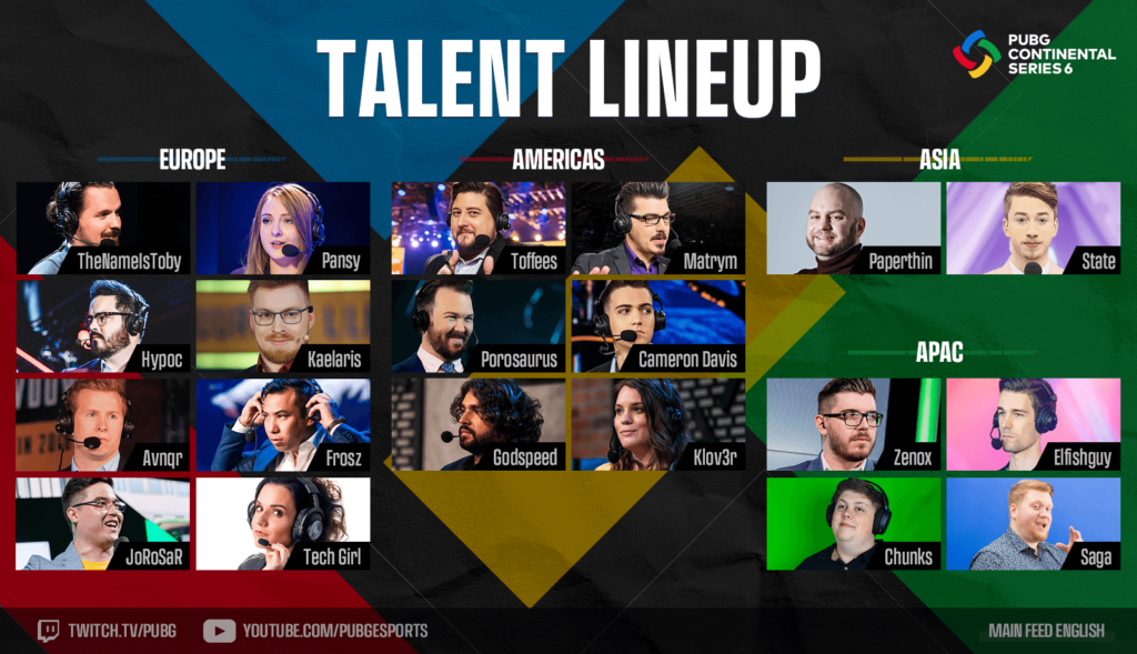 PCS6, küresel çaptaki tüm taraftarlarımız için İngilizce yayına ek olarak, en iyi PUBG Esports yetenekleri ve sunucularıyla birlikte çok sayıda diğer dilde de yayın imkanı sunuyor.