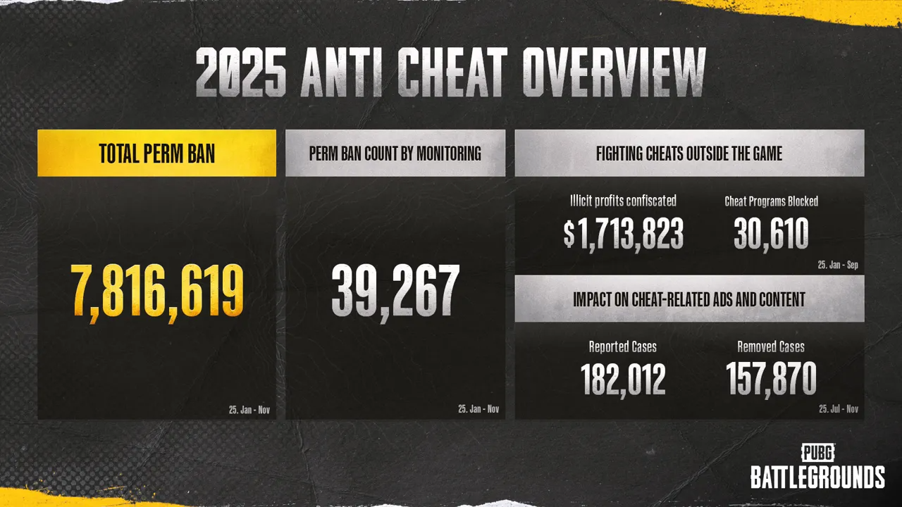 2025 yılı boyunca PUBG, hilelere karşı sürekli hamlelerde bulundu.