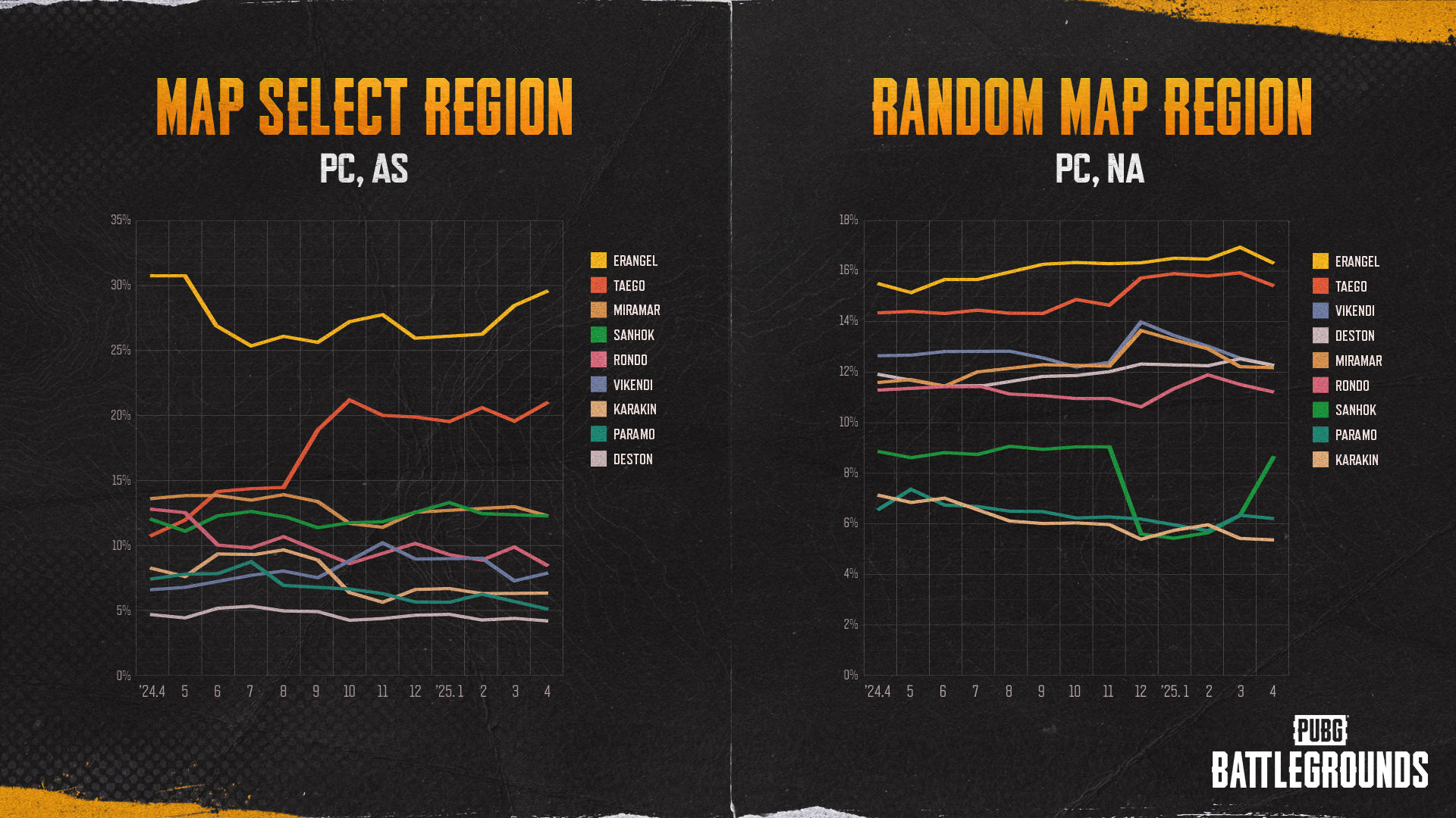 Vì PUBG đã hoạt động với hai nhóm khu vực - Vùng chọn bản đồ và Vùng bản đồ ngẫu nhiên - nên chúng tôi đã nhận được nhiều phản hồi từ người chơi ở cả hai nhóm. Nhìn chung, nhiều người chơi đã bày tỏ ý kiến rằng hệ thống hiện tại có vẻ hạn chế và họ muốn thấy thêm tính đa dạng trong cách cung cấp bản đồ.