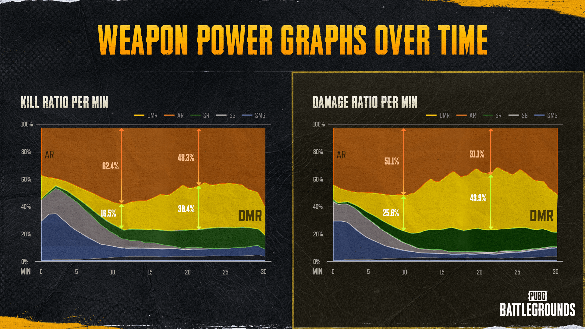 Nhiều bạn có thể thắc mắc tại sao chúng tôi lại điều chỉnh DMR. Để giải thích điều đó, chúng ta cần xem xét kỹ hơn vị trí hiện tại của DMR trong hệ sinh thái sử dụng vũ khí của PUBG.