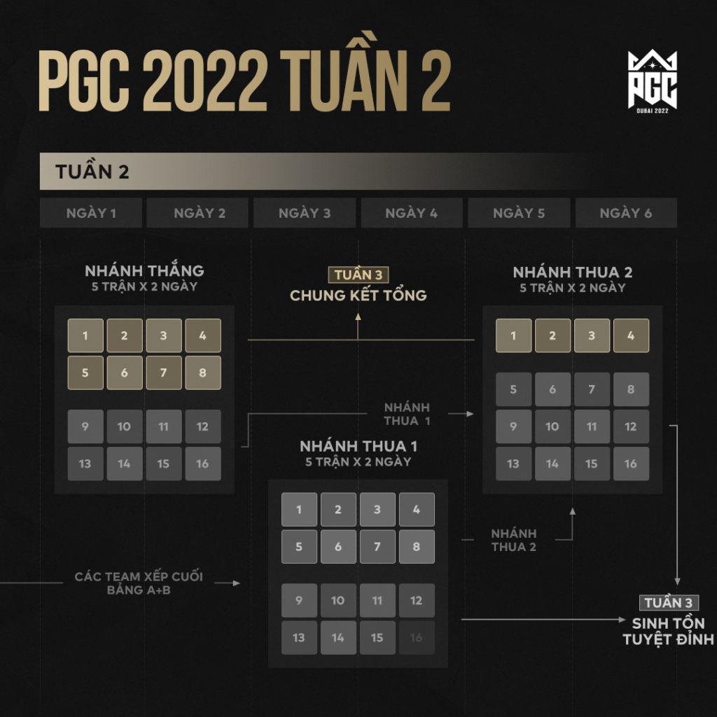 Tuần thứ hai của PGC 2022 sẽ gồm các trận so tài giữa Nhánh Thắng và Nhánh Thua.