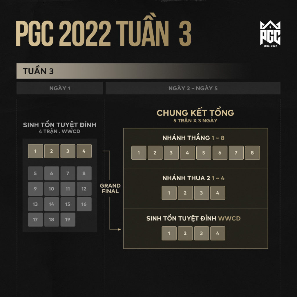 Tuần cuối cùng của PGC 2022 sẽ bắt đầu tại Sinh Tồn Tuyệt Đỉnh với tổng số 19 đội tham gia.