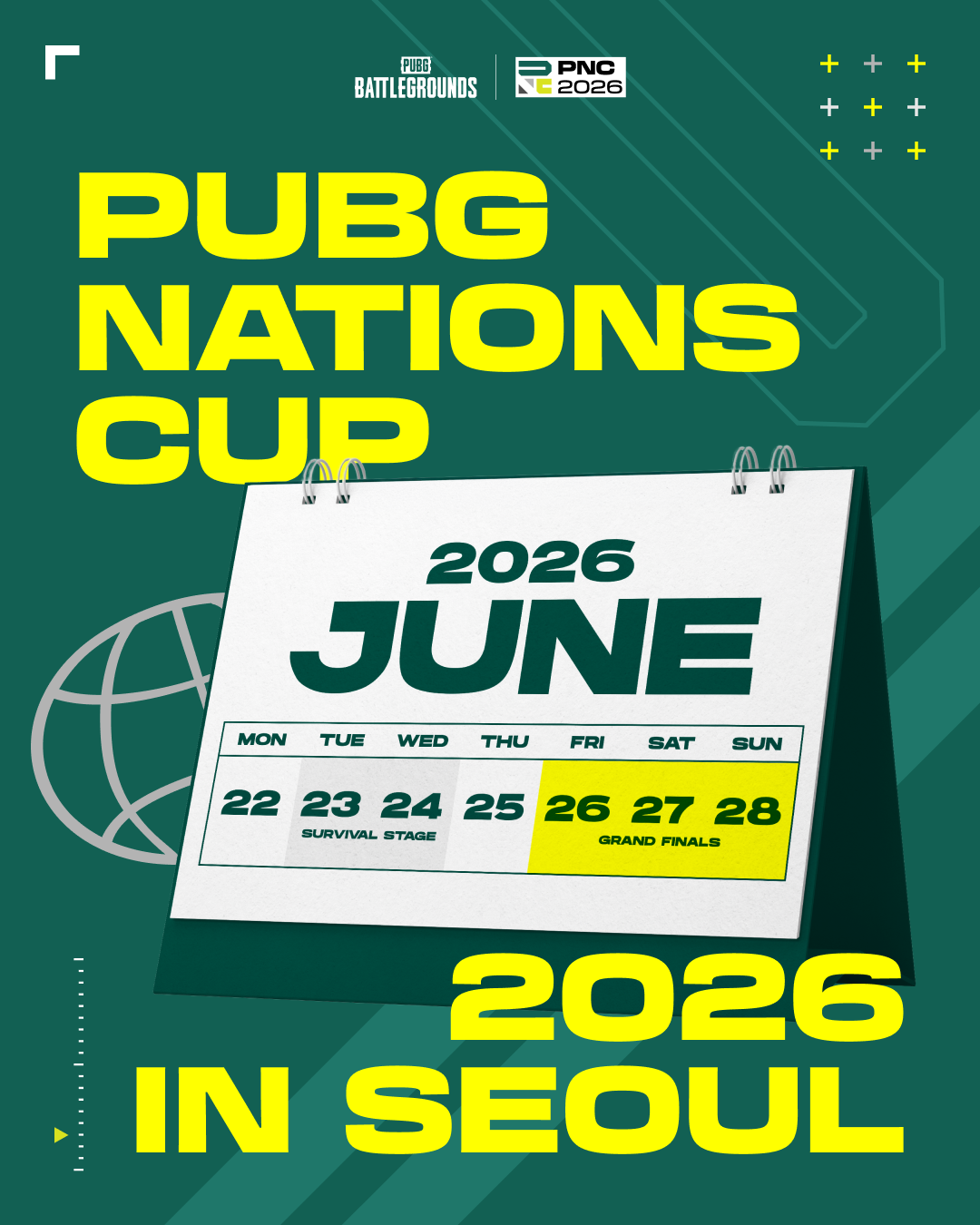 PUBG Nations Cup 2026 (PNC 2026) sẽ trở lại Seoul, Hàn Quốc vào mùa hè này! 24 đội tuyển sẽ một lần nữa tranh tài trong suốt năm ngày thi đấu căng thẳng, nơi niềm tự hào dân tộc được đặt lên hàng đầu. Với sự góp mặt của những thách thức mới, PNC năm nay sẽ sở hữu đội hình đa dạng nhất trong lịch sử giải đấu. Hãy sẵn sàng cho màn đại chiến all-star đỉnh cao của PUBG Esports — PUBG Nations Cup 2026!