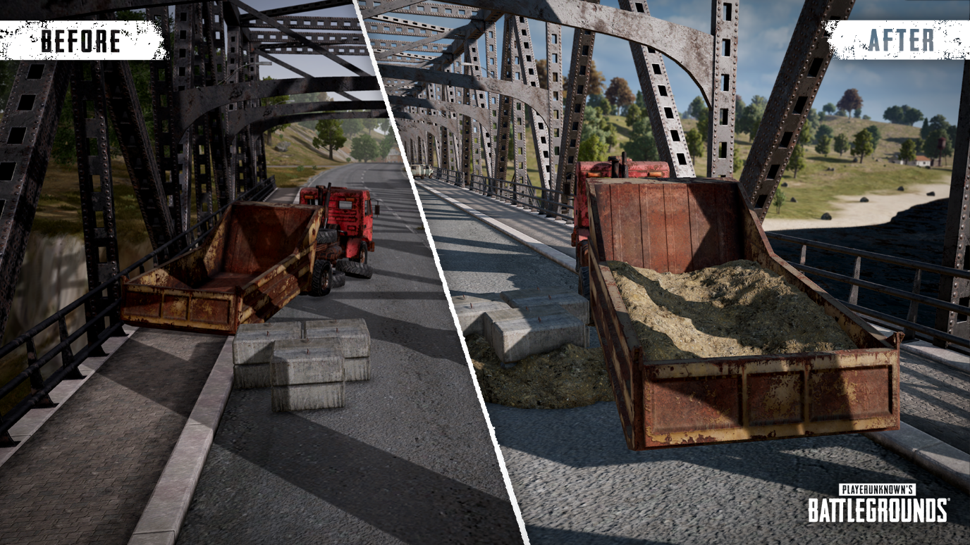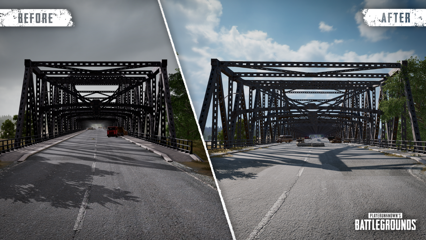 在去年的11月,我们曾收集过各位玩家们对“艾伦格中需要更新的区域”的相关意见。而对于各位玩家们给出的反馈意见,我们内部也进行了热烈的讨论。最后,我们将目光聚焦在了Sosnovka岛上被各位玩家们戏称为“奈何桥”的铁桥上;经过反复斟酌之后,我们最终决定对其进行翻新。我们期待能通过本次更新,为玩家们提供更多在“奈何桥”上遭遇敌人蹲点时的应对选项。