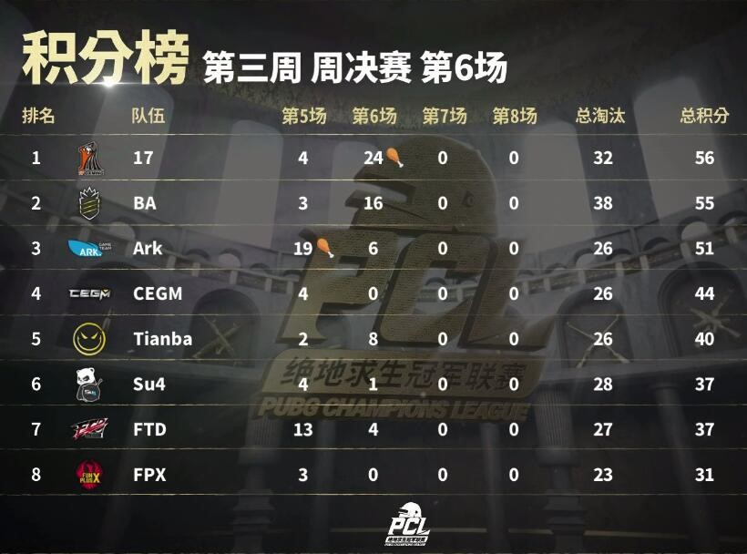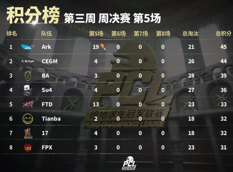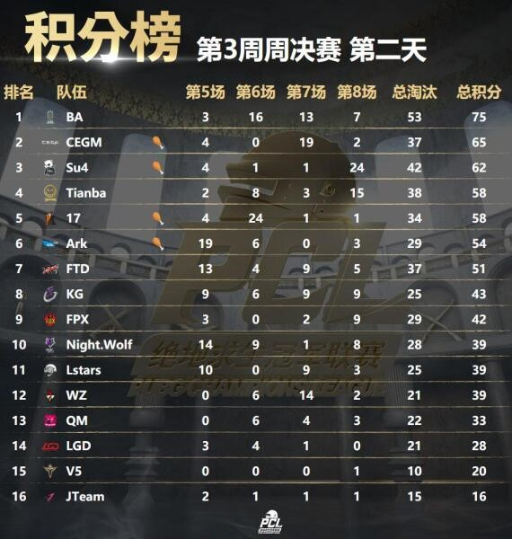 今日是第三周决赛的第二个比赛日,PCL赛程即将过半,谁能拿到第三周冠军,对于后面的排位来说极为重要。