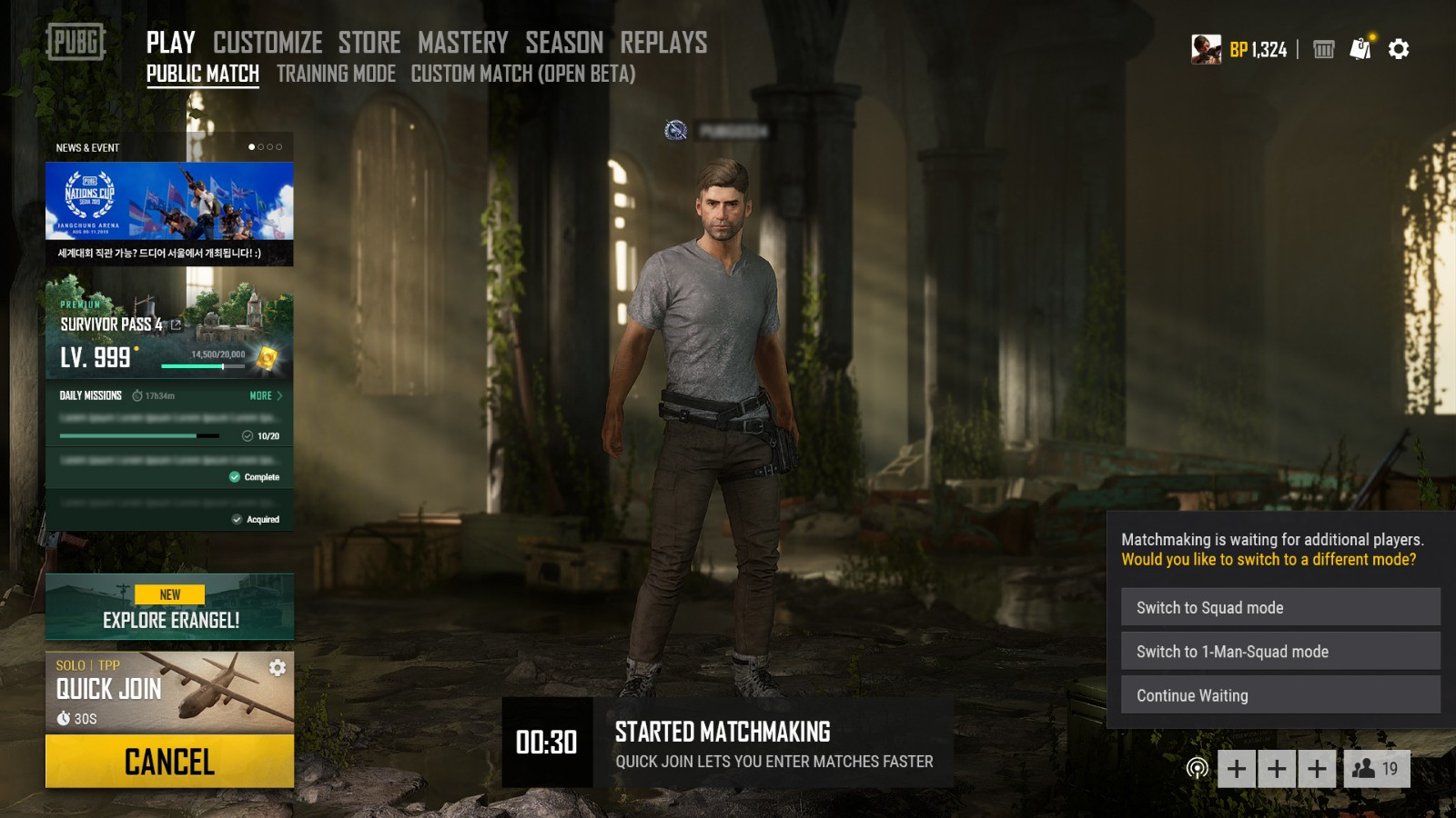 - 为了庆祝2019年8月9日至11日将在首尔奖忠体育场举行的PUBG全明星进行了游戏内更新!关于PUBG全明星详情,请关注中文赛事官方赛事网站。