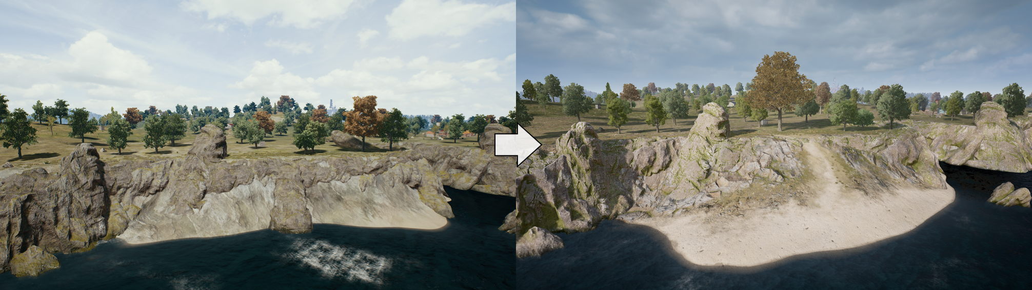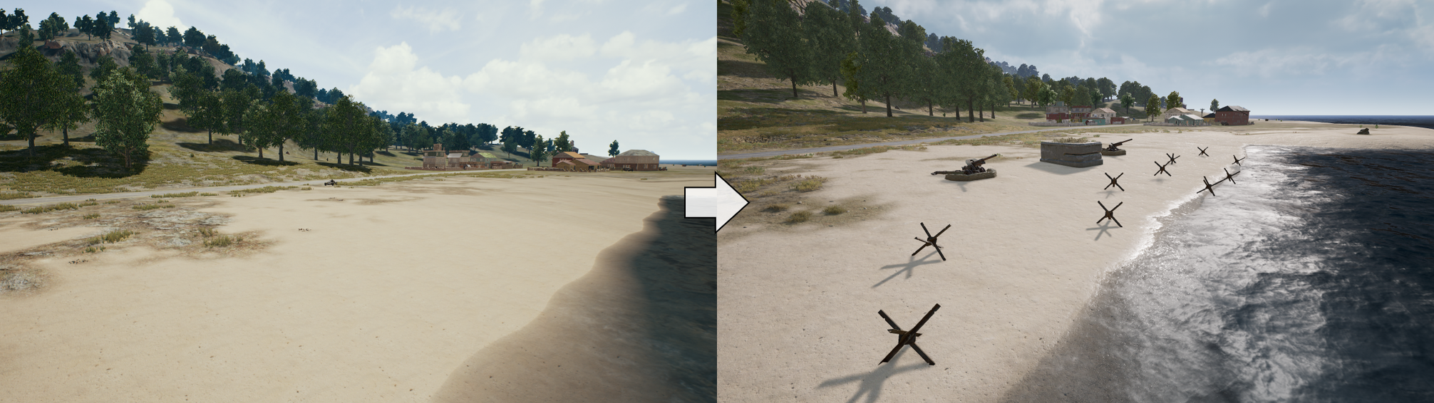 - 海滩上增加了障碍物。