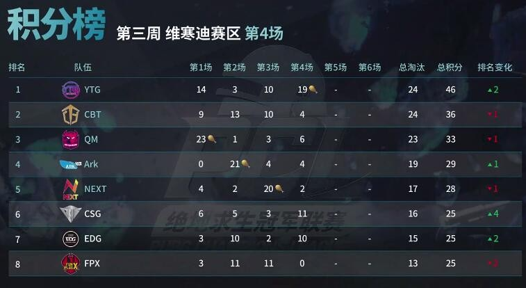 维寒迪第三周第四场 YTG战队淘汰9人获胜