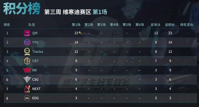 维寒迪第三周第一场 QM战队淘汰13人获胜