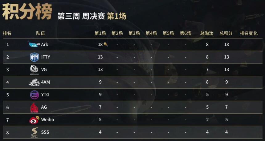 第三周决赛第一日第一场 Ark战队淘汰8人获胜