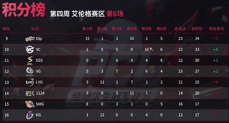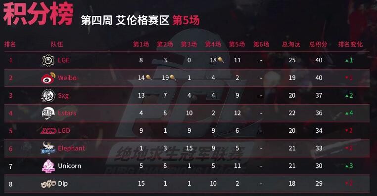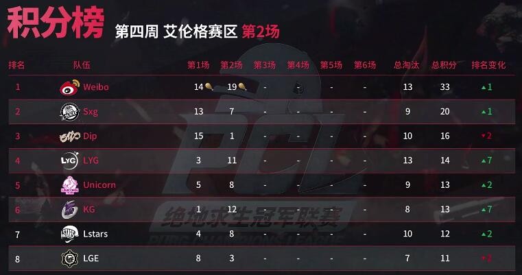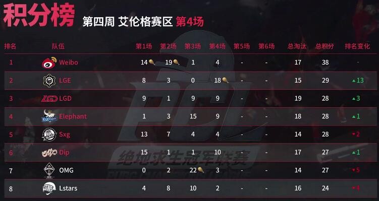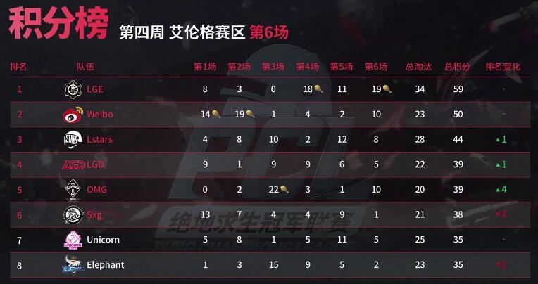 艾伦格第四周比赛全部结束,最终恭喜LGE、Weibo、Lstars、LGD、OMG、Sxg这六支队伍成功晋级周决赛!