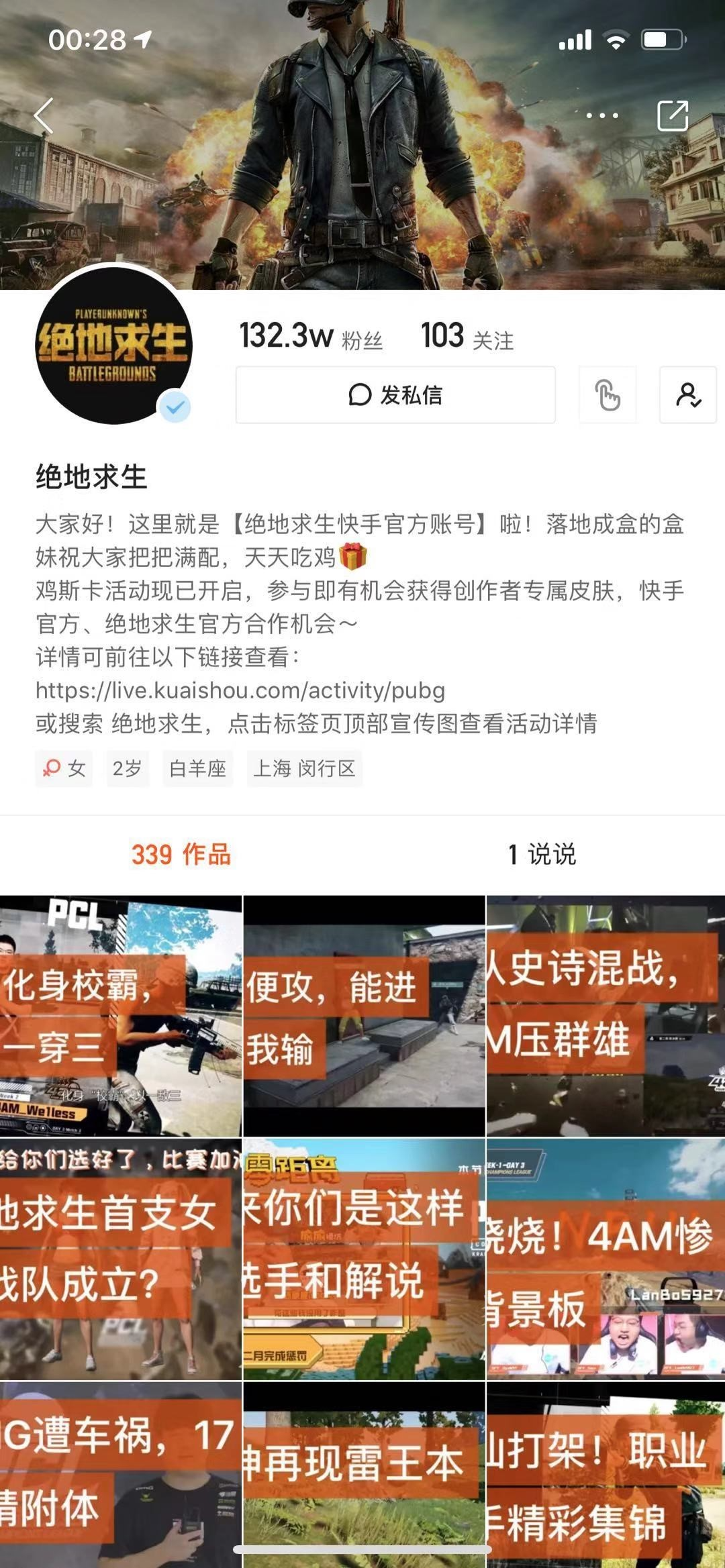 快手PUBG官号:http://m.gifshow.com/s/8BpFNRs7