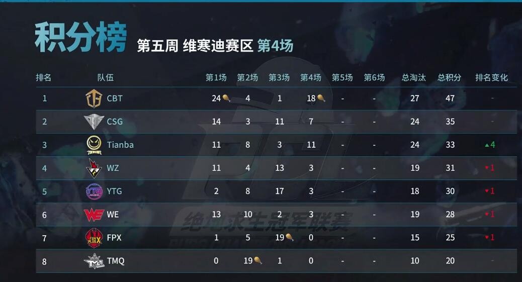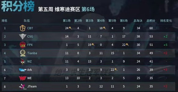 维寒迪第五周第四场 CBT战队淘汰8人获胜