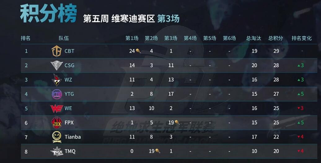 维寒迪第五周第一场 CBT战队淘汰14人获胜