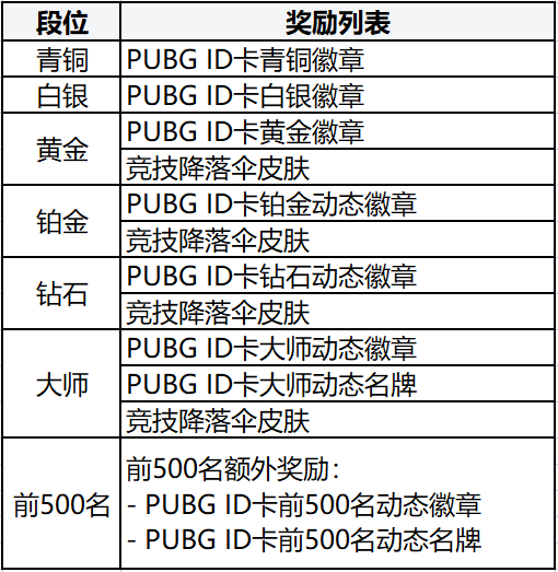- 除了永久性收藏道具 - 降落伞皮肤外,其他的奖励都将采取“解锁”机制。解锁型奖励只能在解锁后的一个赛季内进行使用;