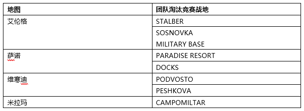 团队淘汰竞赛模式共有7个战地,都是从当前的战术竞技比赛地图中选取出来的。