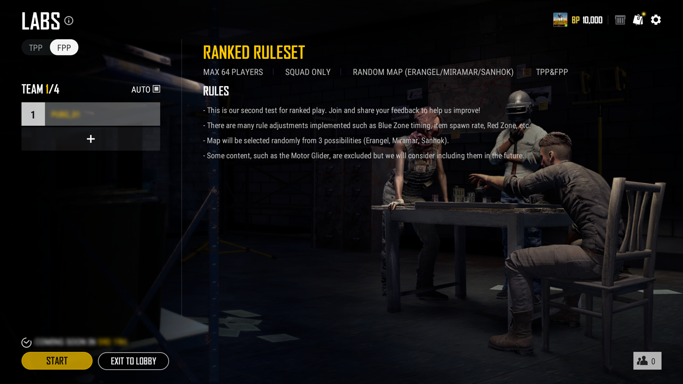 PUBG实验室的竞技比赛游戏规则测试是一个测试性内容,因此无法获得BP或生存通行证XP,敬请留意。