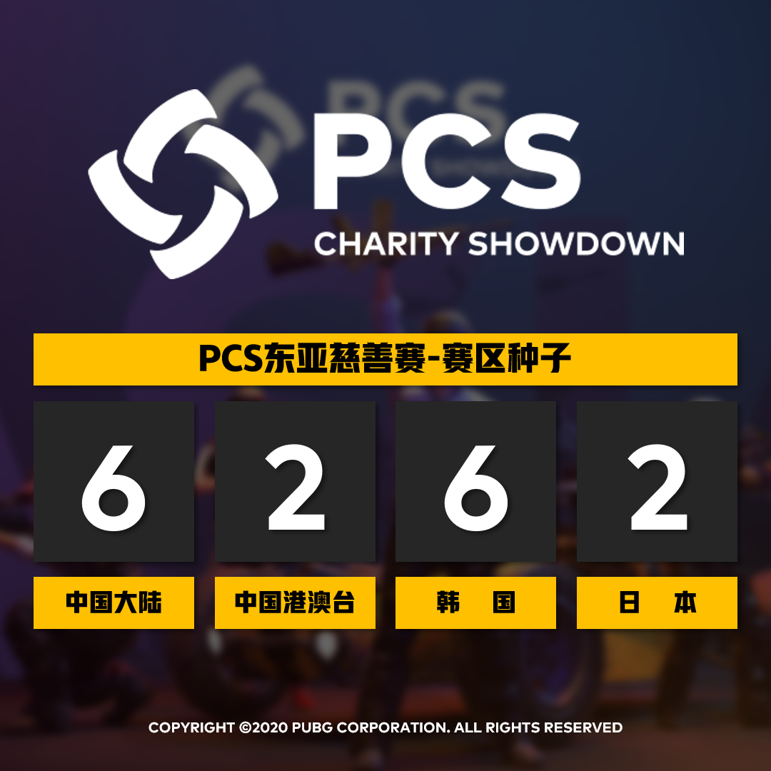 5月的PCS将以慈善赛(PCS Charity Showdown)的名义展开,视作PGS柏林站同等规格的官方赛事,因此我们将沿用原PGS柏林站的选拔方式,2020PCL春季赛总积分排名前5名战队及2019PGC全球总决赛第三名4AM战队,将获得PCS东亚慈善赛参赛资格。