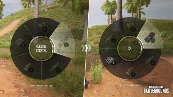 随着绝地求生中投掷武器种类的不断增加,为了方便玩家们能更加迅速地对投掷武器进行选取,我们对投掷武器滚轮菜单进行了优化。