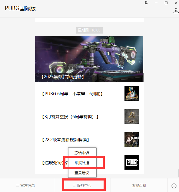 通过微信公众号PUBG国际版举报