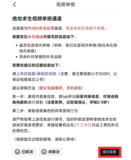 目前PUBG开放的作弊举报渠道共有以下三种:
