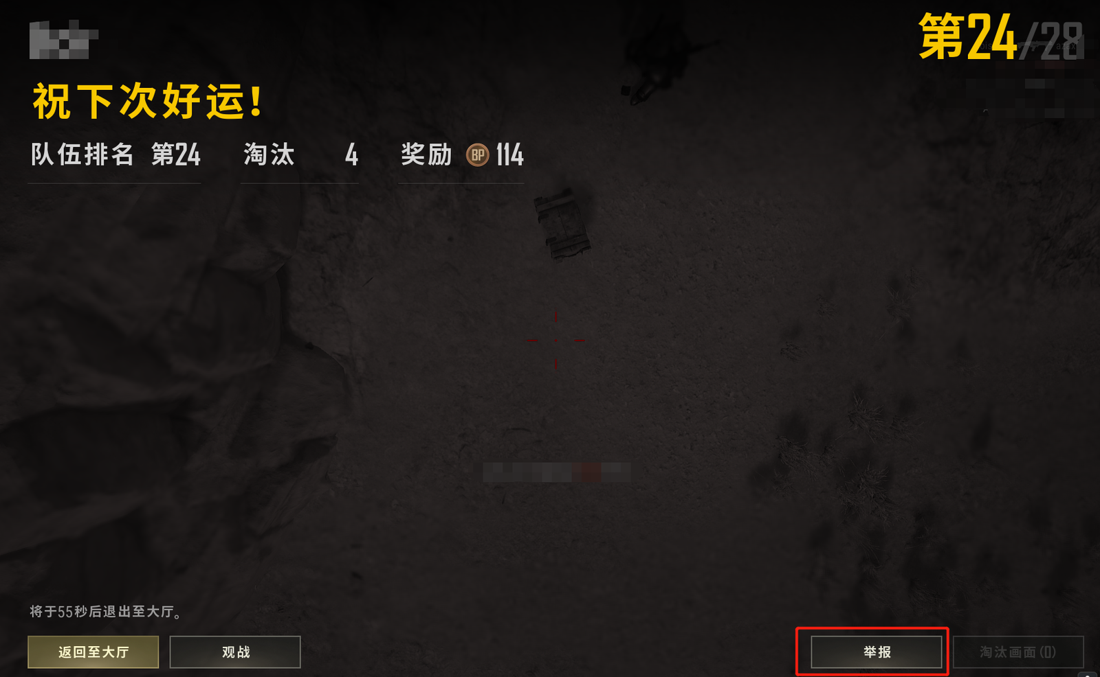 1.在游戏内被疑似非正常操作淘汰时,可以在淘汰界面右下角点击“举报按钮”进入举报页面。
