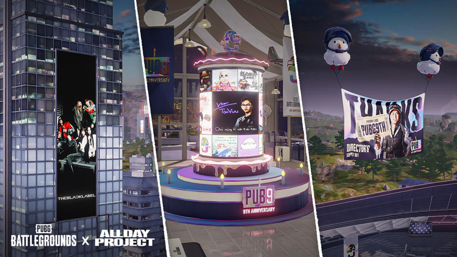 - 为迎接 PUBG 9周年,加入了 ALLDAY PROJECT和合作者共同庆祝的纪念显示屏。