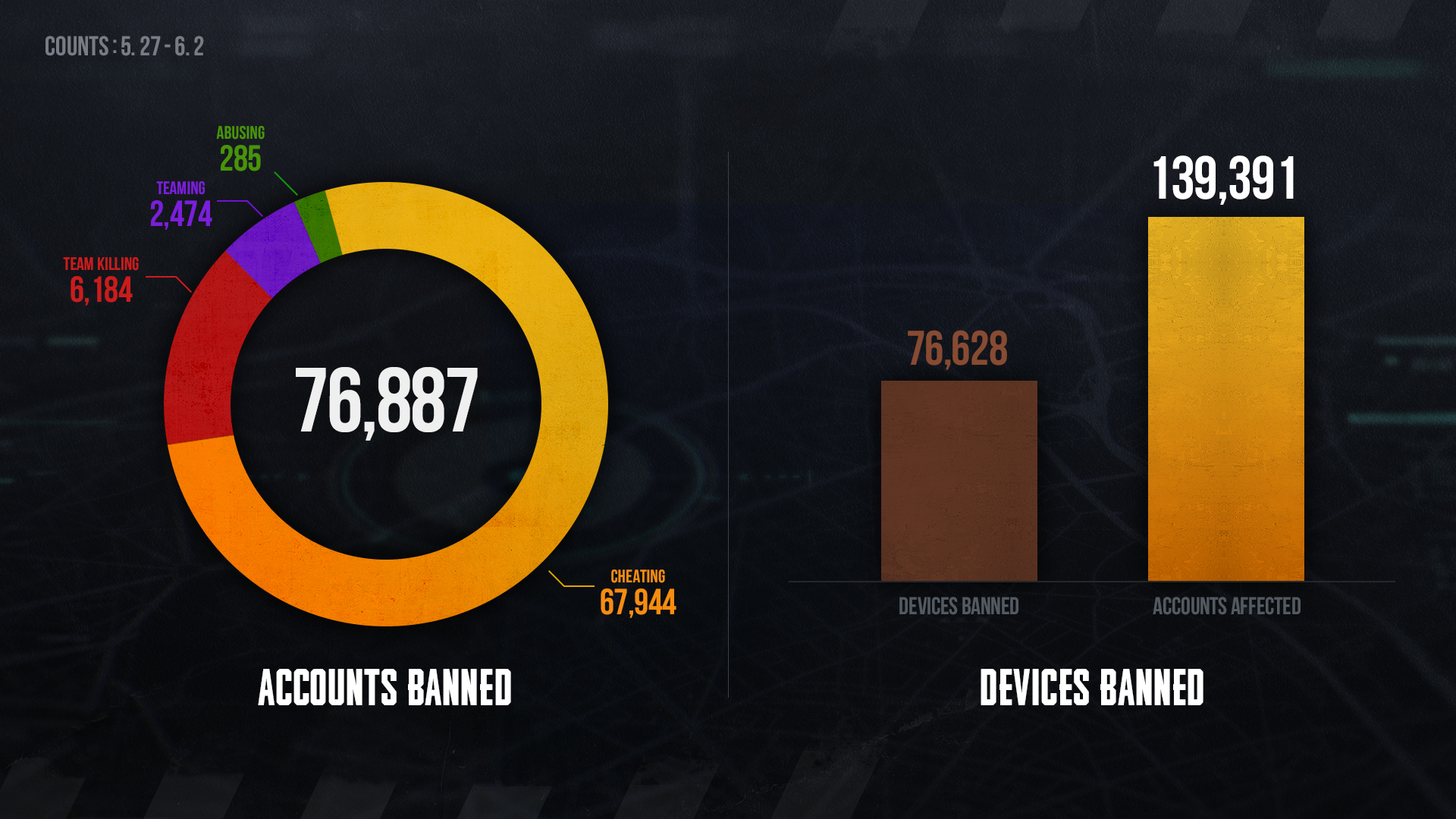 Nous partageons la liste des joueurs bannis du 27/05 au 02/06 pour faire prendre conscience des utilisations de logiciels illégaux et des conséquences de tels comportements abusifs. Vous trouverez ici la liste des joueurs bannis pour violation des règles de conduite.
