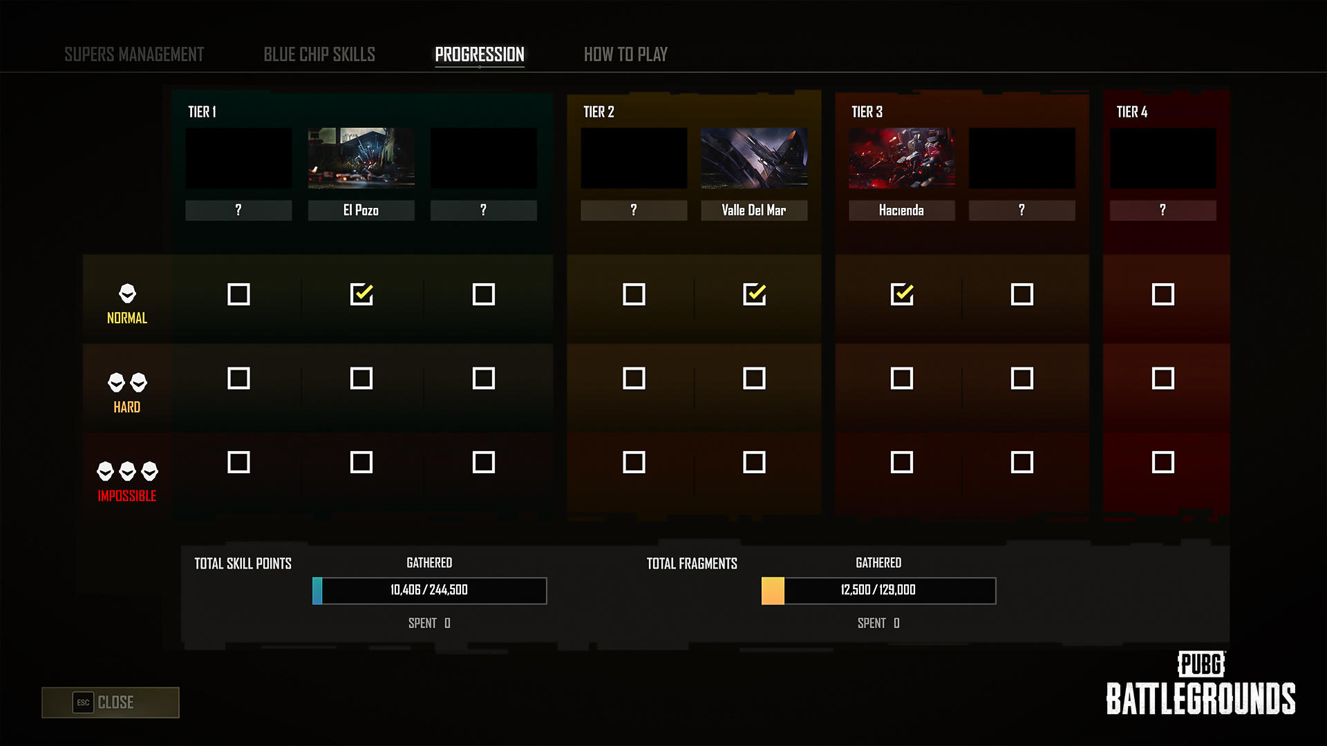 플레이어 사망 시 장비와 미션 진행 상황은 초기화되지만, 슈퍼, 블루칩 스킬, 사용하지 않은 재화(조각 및 스킬 포인트)는 영구적으로 유지됩니다.