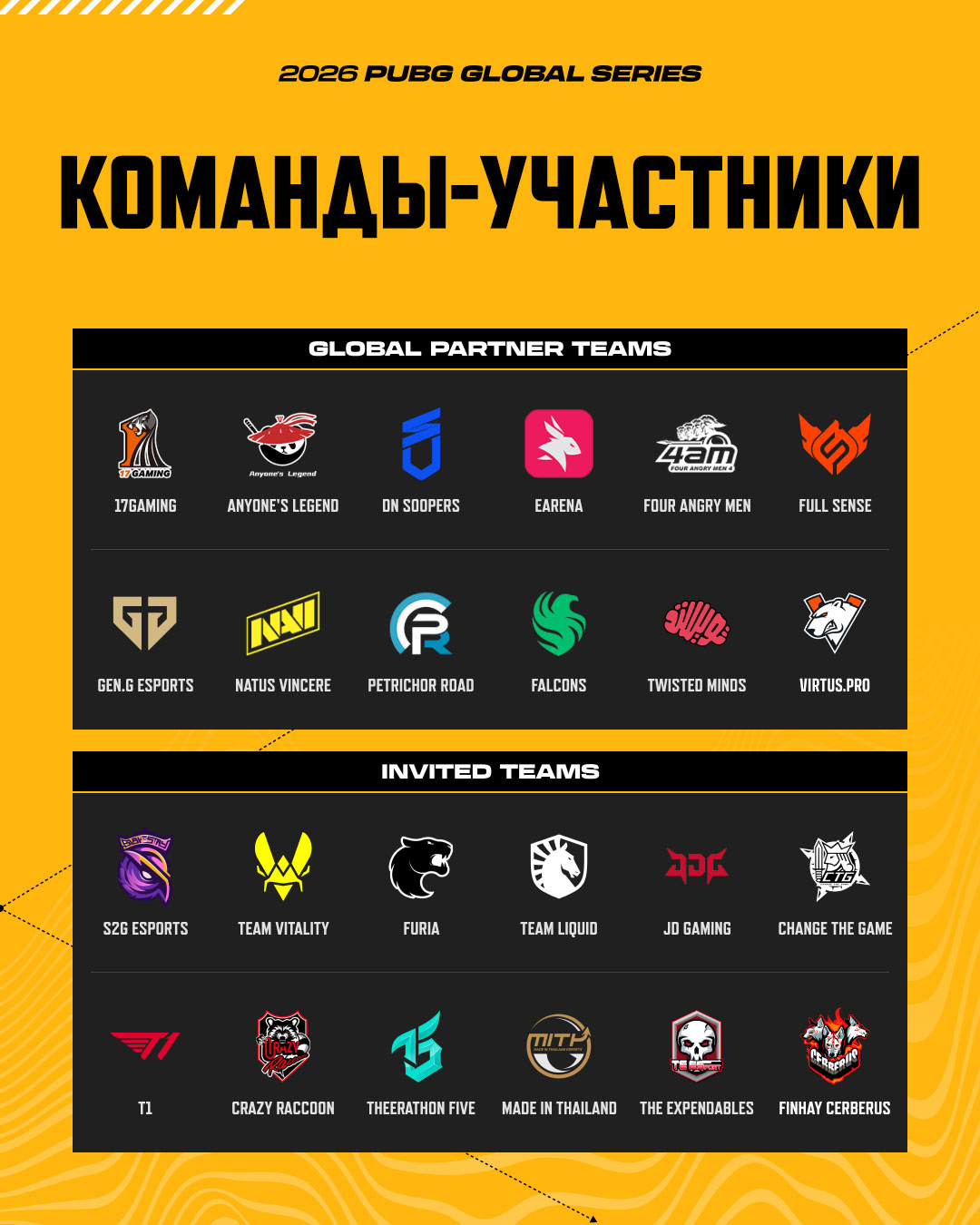 Мы рады объявить 24 команды, которые примут участие в первой половине сезона 2026 PUBG Global Series!