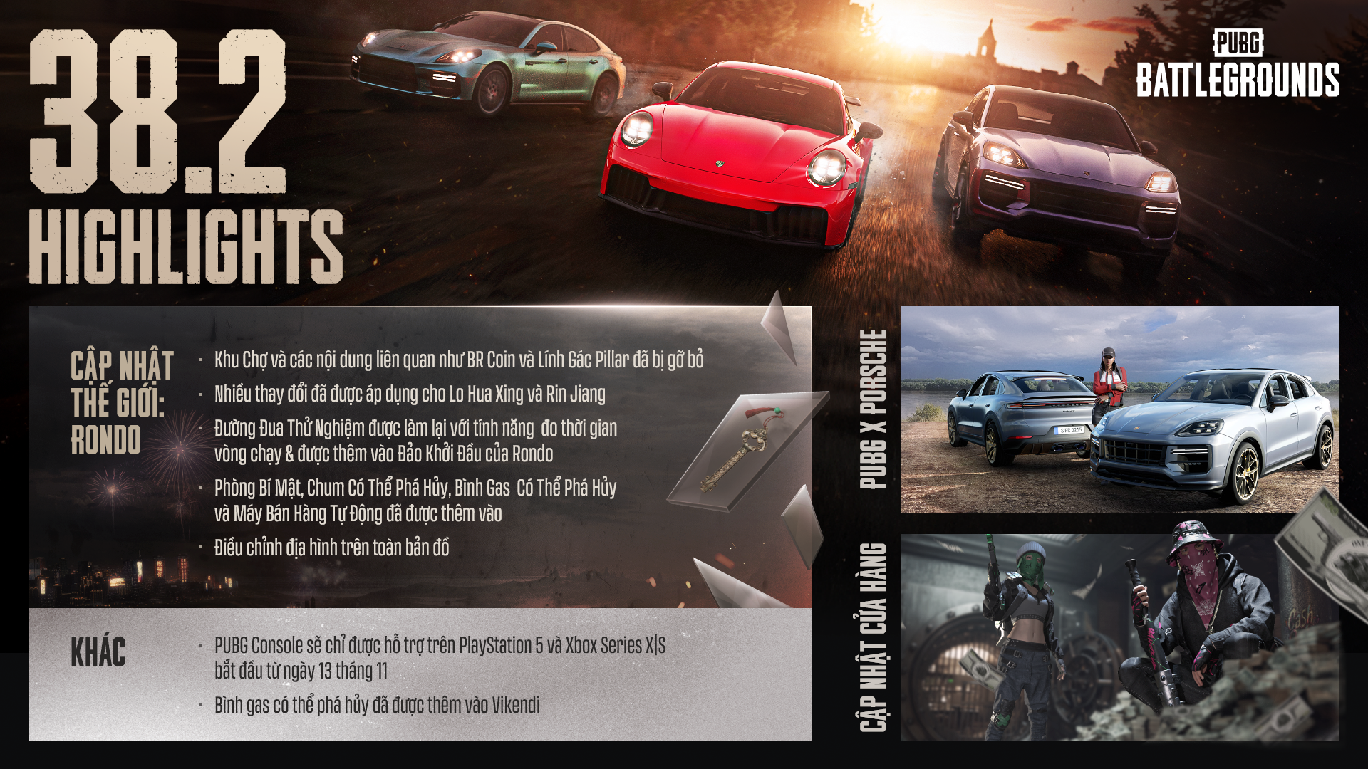 Hãy theo dõi hàng loạt thông tin cập nhật thú vị liên quan đến sự kiện hợp tác giữa chúng tôi và Porsche nhé! Nhớ xem thông báo PUBG x Porsche sắp tới để biết cách nhận những skin Porsche tinh xảo, cách mở trang Chế tạo Porsche mới tại Công Xưởng, tham gia các sự kiện và khám phá nhiều nội dung thú vị khác!