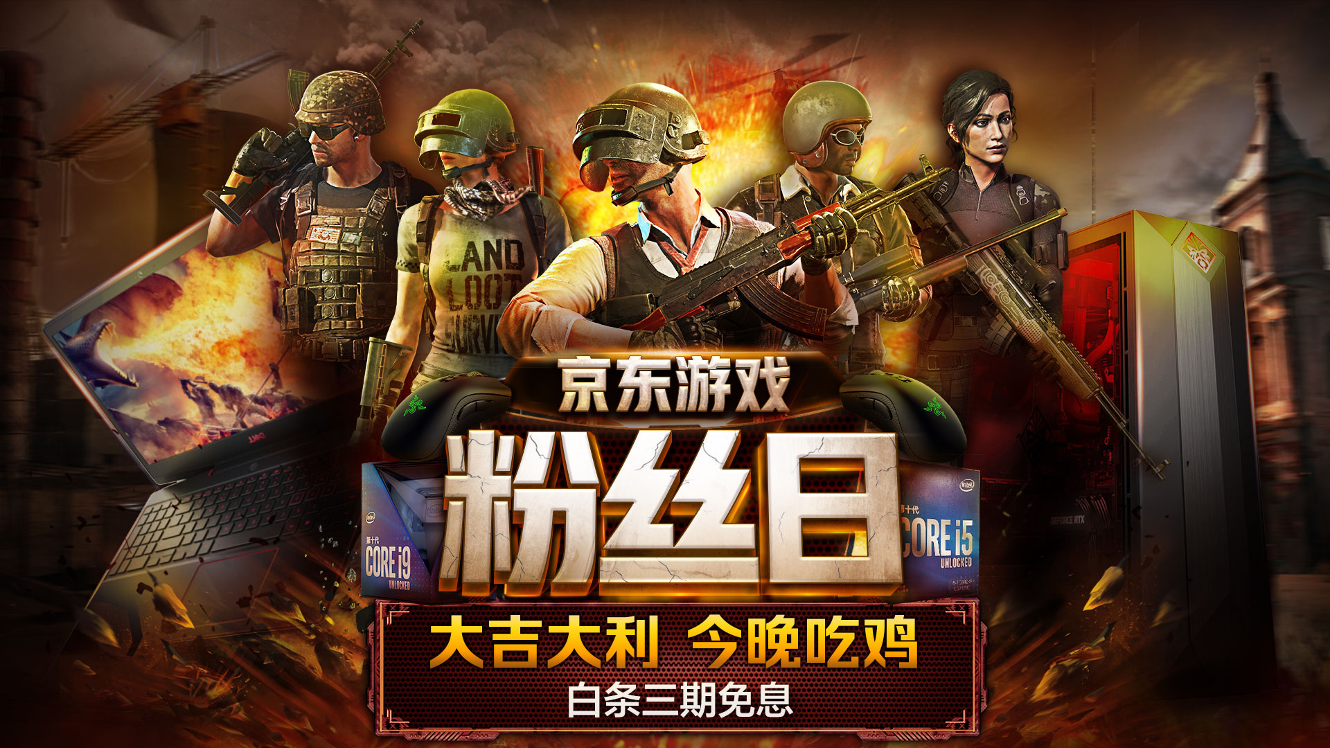 本月PUBG联合京东电脑数码,打造的超级游戏粉丝日,12月1日正式启动。在PUBG主题会场,玩家们可享受大牌爆款秒杀、白条三期免息等专属优惠,助力PUBG玩家入手精品电竞装备。京东电脑数码超级游戏粉丝日期间,各大品牌厂商专区都奉上了玩家必备好物,各项优惠与服务也为用户提供贴心保障 。点击进入京东游戏粉丝日PUBG主题会场